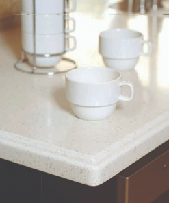 • Ưu điểm: Không thấm các chất có màu như cafe, nước mắm, các chất hóa học khác,… Kháng khuẩn, bền màu, không thấy vết nối giữa 2 tấm đá,….