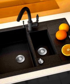 Đá nhân tạo solid surface PE814 – Pebble Ebony – Sự nổi bật của gam màu đen mun huyền bí